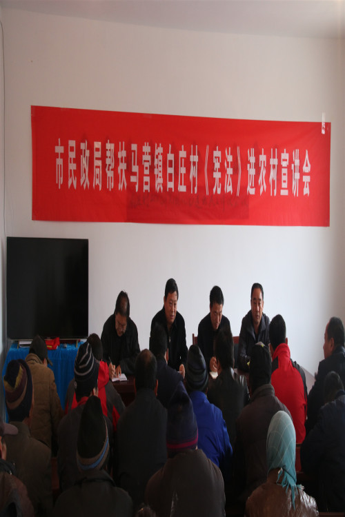 11月3日,市民政局组织干部职工赴马营镇白庄村开展《宪法》宣讲活动,对《中华人民共和国宪法》进行宣讲,让大家明白《宪法》是国家根本法,是治国安邦的总章程,是党和人民意志的集中体现,进一步维护宪法权威。宣讲活动中,市民政局党组书记、局长王振中做了题为《全面贯彻宪法精神 着力推动美丽乡村建设》的讲课,从充分认识宪法修改的重大意义、准确把握宪法修正案的精神实质、立足基层实际切实抓好宪法的贯彻落实3个方面进行了宣讲。