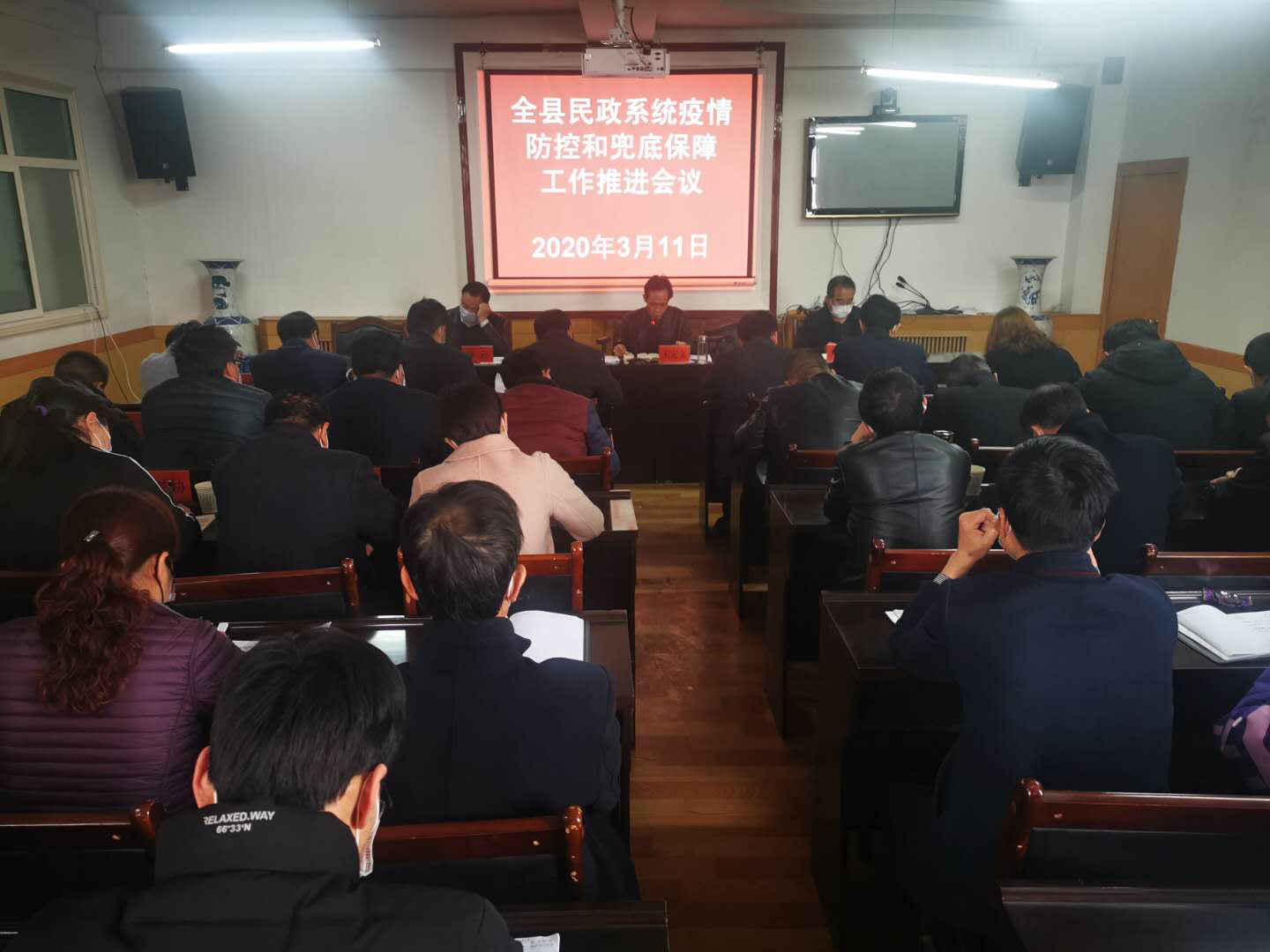 3月11日下午,通渭县民政局召开全县民政系统疫情防控和兜底保障工作推进会议。局党组书记、局长王定文主持会议并作了重要讲话,局领导班子全体成员出席,各乡镇民政办主任、县民政局全体干部职工60余人参加了会议。