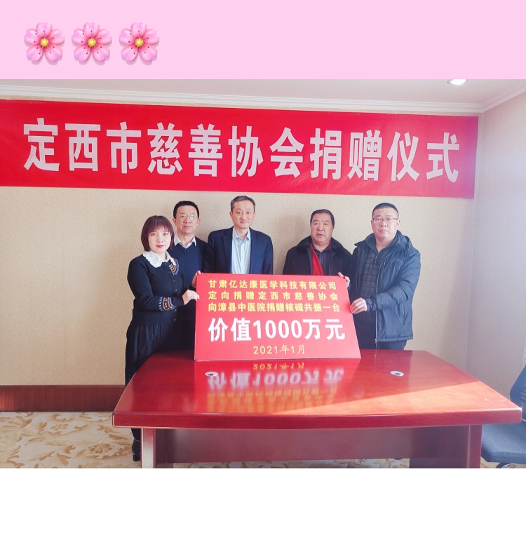 冬已至,春将来。1月22日,市慈善协会迎来了2021年以来捐赠活动的第一个开门红。在市慈善协会会议室里,市慈善协会牵手甘肃亿达康医学科技有限公司为漳县中医院爱心定向捐赠由东软医疗系统股份有限公司生产提供的MSM_S1P型超导磁共振成像系统设备1套,价值约1千万元。