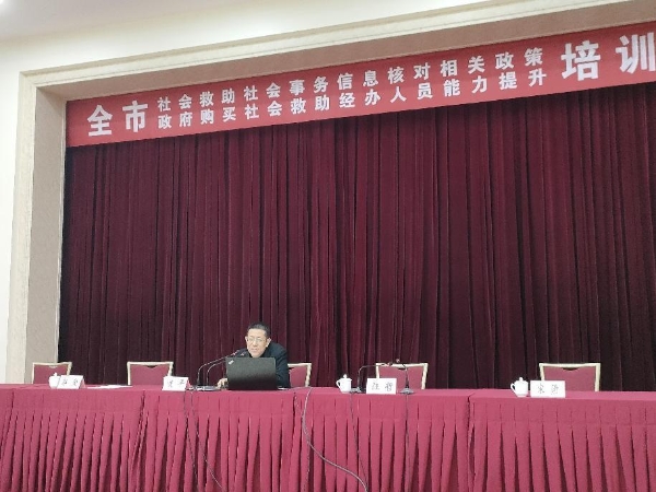 市民政局党组成员、市社会救助办公室主任汪哲同志主持并负责培训班各项事务。要求各参学人员要进一步提高思想认识,虚心听讲、认真学习,做好笔记,确保培训班取得实实在在的效果。一要站稳人民立场,树牢为民情怀。二要广泛宣传培训,精准吃透精神;三要严格工作程序,精准认定对象;四要坚持问题导向,强化督查考核;五要扩围提质增效,认真摸底调查;六要规范软件资料,提升规范化管理水平。